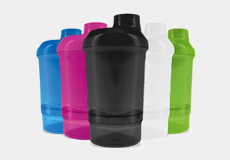 Форма частіше фігурна, зі зручною виїмкою для руки. Зверху є кришка з клапаном, а всередині - збовтувальний елемент, який дозволяє якісно перемішати суху суміш із рідиною.