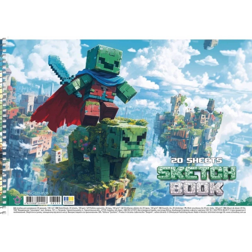 Альбом для малювання «Star» Школярик серії 8535 на 20 аркушів зі спіральним кріпленням підходить для шкільних уроків і творчих занять. Папір щільністю 100 г/м² призначений для олівців і фломастерів. Спіраль забезпечує зручне користування та перегортання сторінок. Упаковка — 9 шт., ящик — 108 шт.