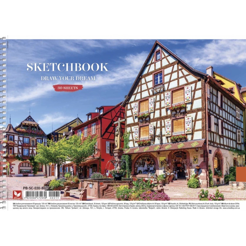 Альбом для малювання Школярик серії 8019 на 30 аркушів зі спіральним кріпленням призначений для навчальних і творчих робіт. Папір щільністю 120 г/м² добре підходить для олівців, фломастерів і фарб. Зручний формат для школи та гуртків. Упаковка - 9 шт., ящик - 63 шт.