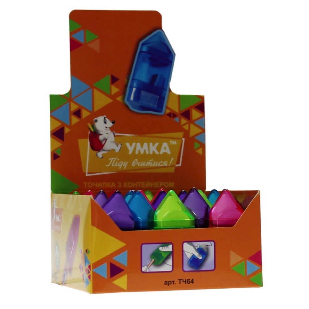 Чинка УМКА ТЧ64 з контейнером та ластиком. Високоякісна чинка для олівців з контейнером для стружки та ластиком для стирання.