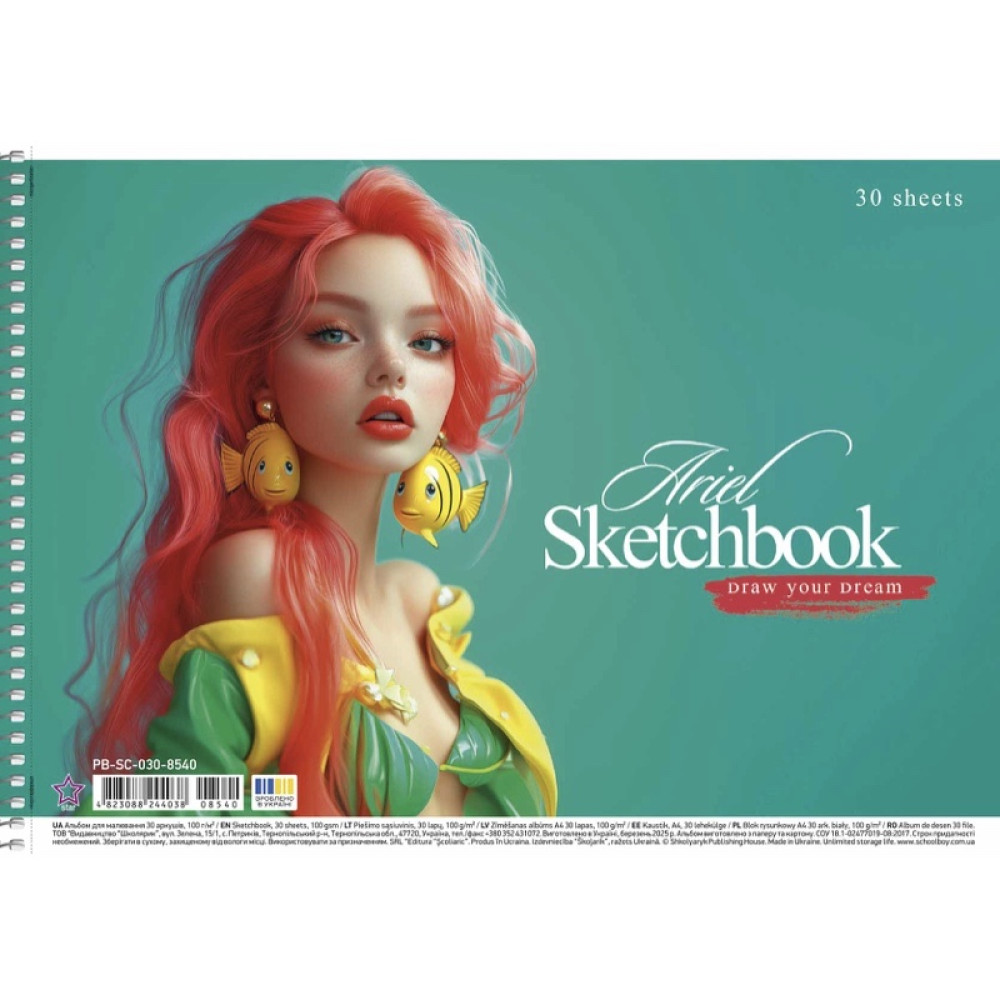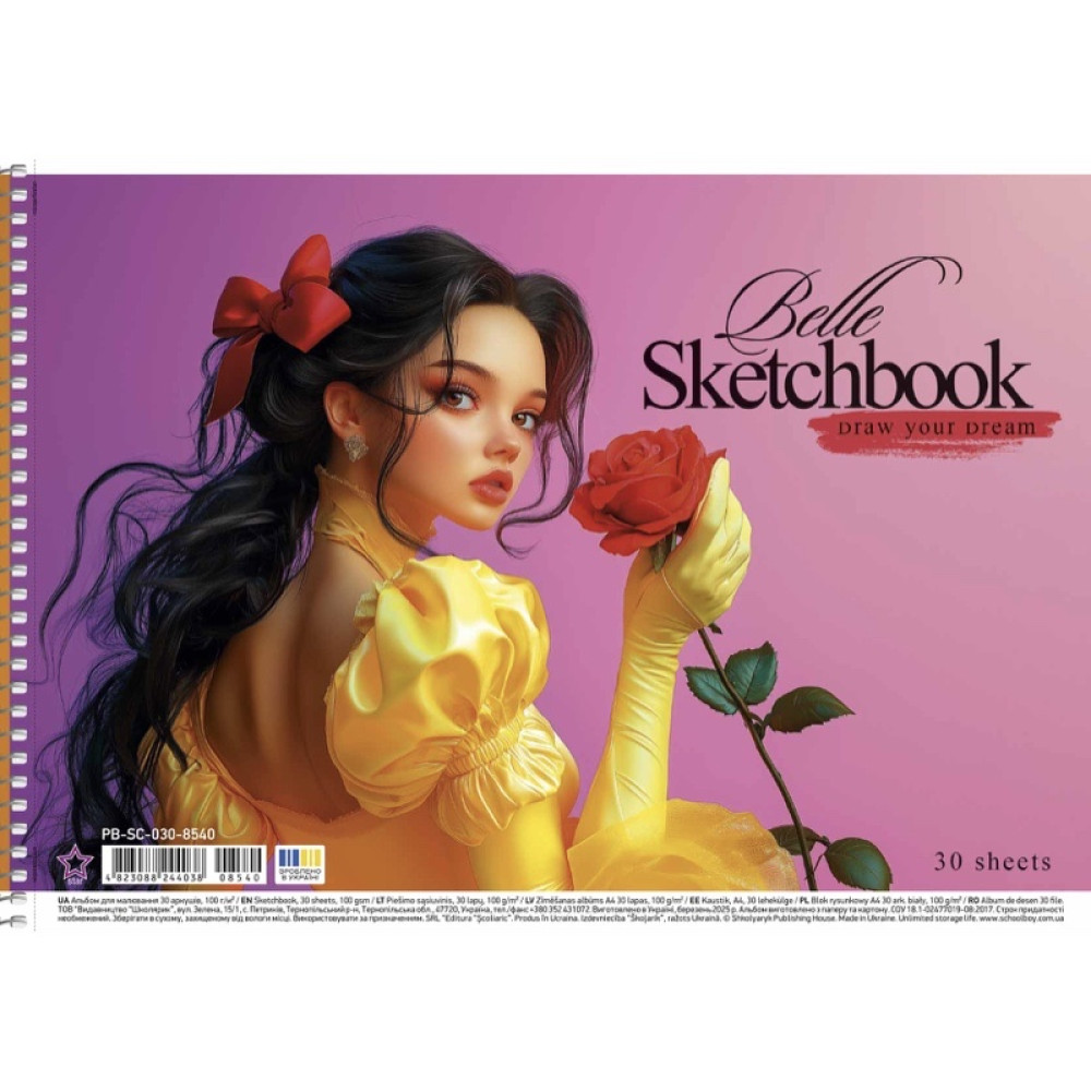 Альбом для рисования "Star" Школьник серии 8540 на 30 листов со спиральными крепежами и спиральными креплениями. Бумага плотностью 100 г/м² предназначена для карандашей и фломастеров. Спираль обеспечивает удобное пролистывание страниц. Упаковка – 9 шт., ящик – 81 шт.