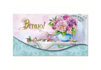 Листівка-конверт "Вітаємо" (10 шт.)Листівка-конверт з написом "Вітаємо" призначена для акуратного вручення грошових подарунків, сертифікатів або корот..