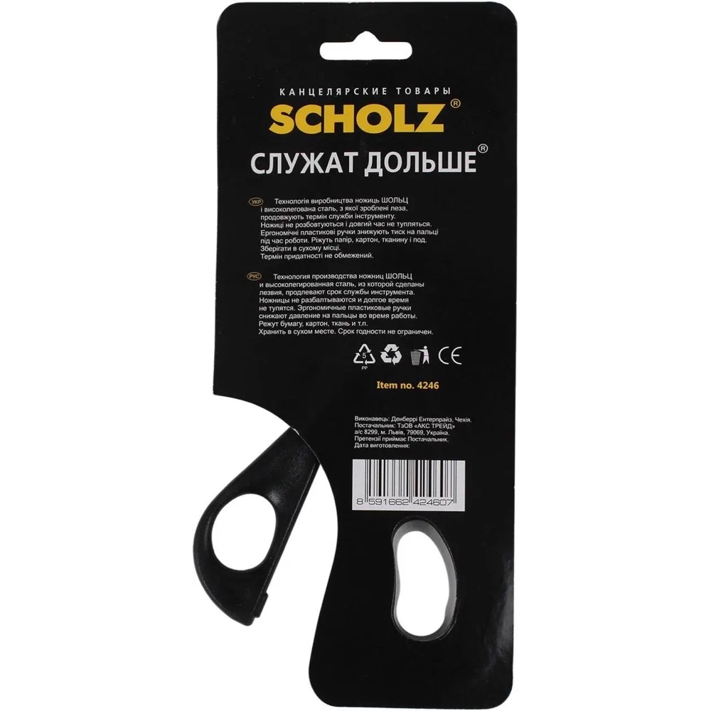 Ножиці SCHOLZ 4246 довжиною 16,5 см - компактний інструмент для виконання щоденних канцелярських завдань. Вони зручні для різання паперу, тонкого картону та інших матеріалів. Гострі металеві леза забезпечують акуратний зріз, а легка конструкція робить ножиці зручними для роботи в офісі або навчальному процесі.